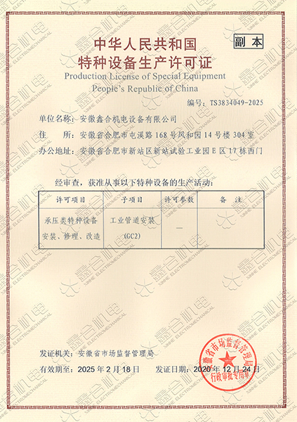 目前我公司具有建筑機(jī)電安裝工程專業(yè)承包一級(jí)資質(zhì)、總承包二級(jí)、GC2壓力管道設(shè)計(jì)、施工資質(zhì)。現(xiàn)有高級(jí)工程師5名、高級(jí)技師55名、工程師22名、助工25名、技術(shù)員22名、各類專業(yè)技師50多名,強(qiáng)大的技術(shù)力量及精良的施工隊(duì)伍,為客戶提供全方位服務(wù)。 公司本著“一切為了用戶”的經(jīng)營(yíng)理念,“以品質(zhì)求生存、以誠(chéng)信贏市場(chǎng)、以管理促發(fā)展”為要求,努力為廣大客戶提供專業(yè),優(yōu)質(zhì)、高效的服務(wù)。